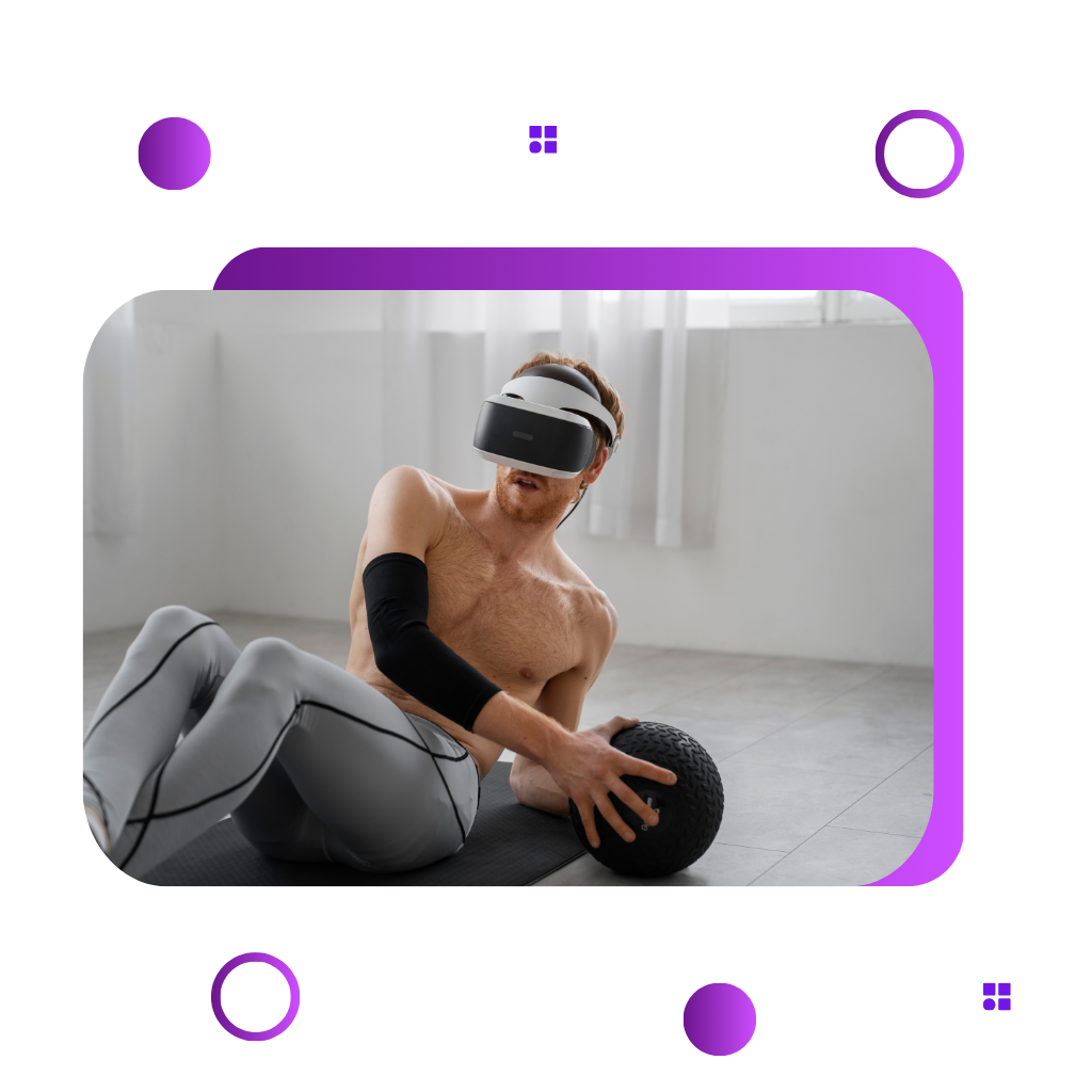 باستخدام نظارات الواقع الافتراضي وأجهزة الاستشعار القابلة للارتداء، يمكن للمستخدمين الانغماس في بيئة تدريب افتراضية، وكأنهم في صالة جيم أو مضمار سباق. تشمل هذه التجارب تمارين مثل الركض، ورفع الأثقال، وتمارين الكارديو، حتى رياضات مثل الملاكمة أو اليوغا، والتي يتم تعديلها وإضافة تأثيرات حسية لتزيد من التفاعل والإثارة. قد يكون المستخدم في منزله، ولكنه يشعر كأنه يمارسها على جبال افتراضية، أو يشارك في سباقات ضد لاعبين من جميع أنحاء العالم